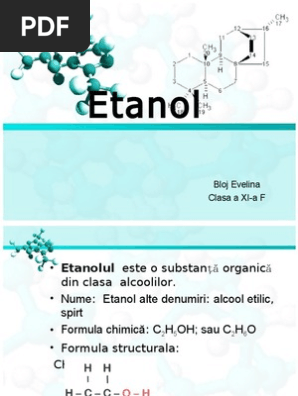 Referat despre etanol procedeul prezinta avantaje din punct de vedere tehnic dar nu este economic. Ca unități structurale are o grupare metil ce prezintă o simterie trigonală și una hidroxil. Molecula de metanol este alcătuită dintr un atom de carbon unul de oxigen si patru de hidrogen.
