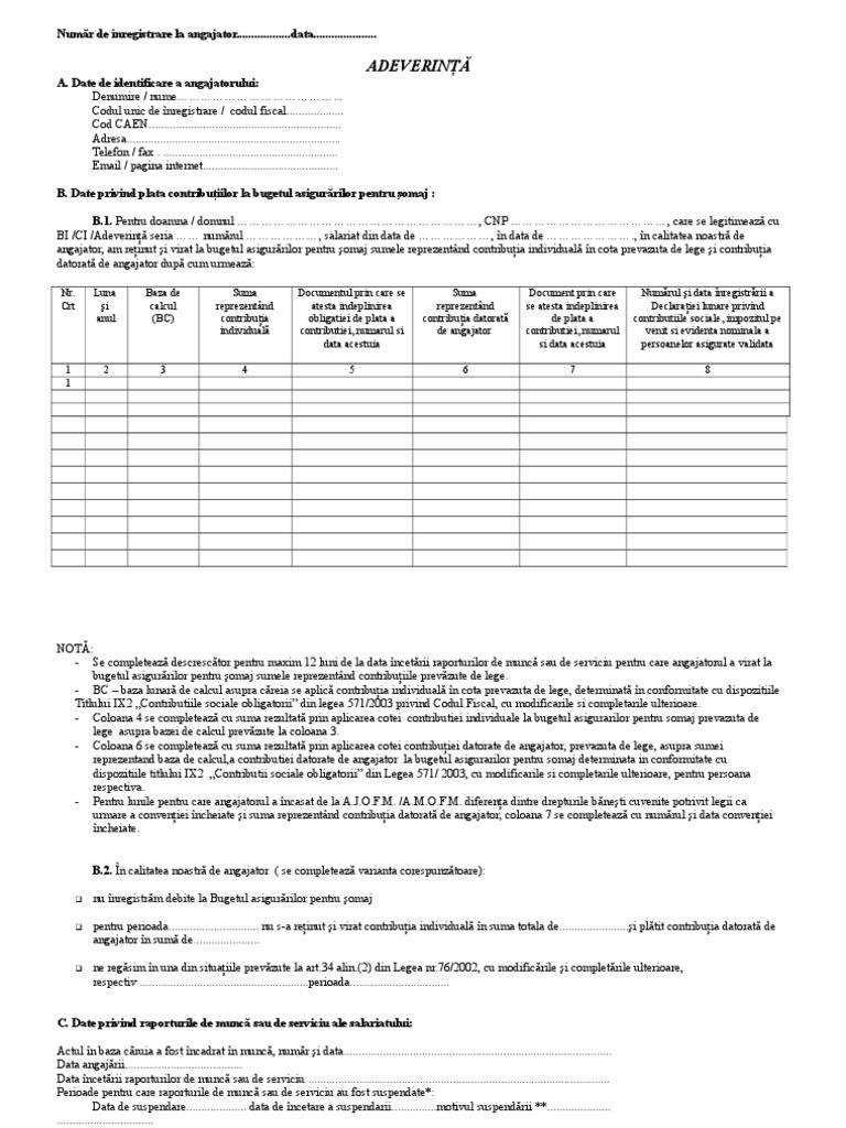 Adeverinta Stagiu De Cotizare Angajator