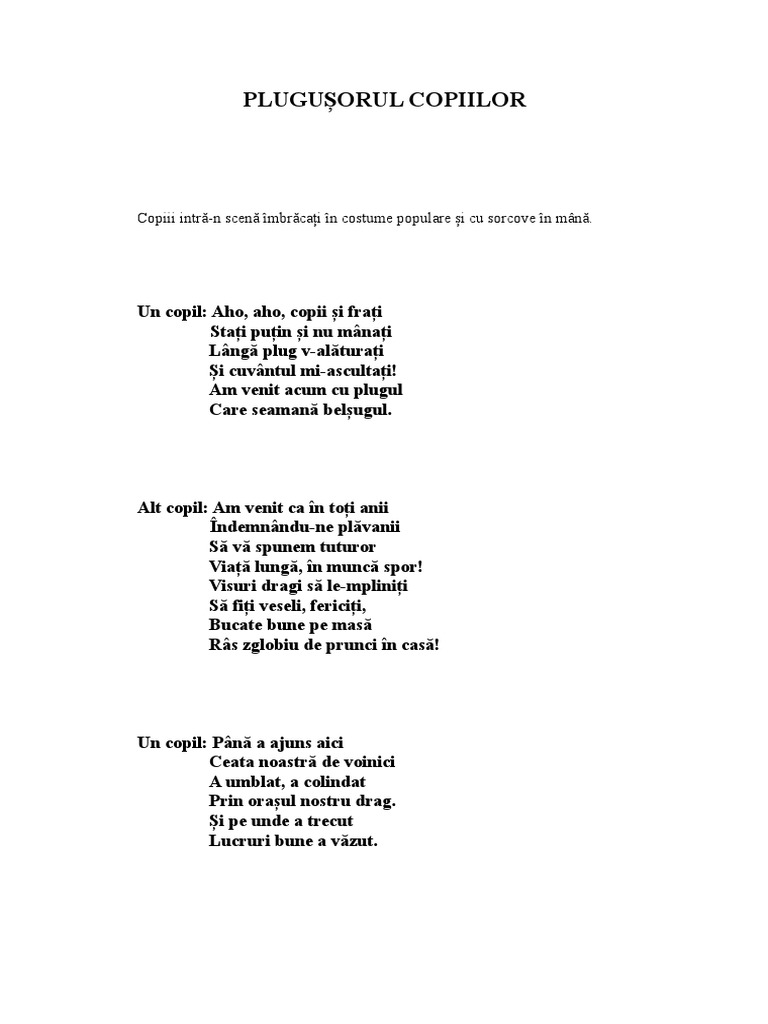 și în scări s a ridicat ca s aleagă un loc curat de arat și semănat. Mâine anul se noieste iliescu tot trăiește. Aho aho copii si frati. Aho aho copii și frați stați putin și nu mânați lângă boi v alăturați și cuvântul mi ascutați.