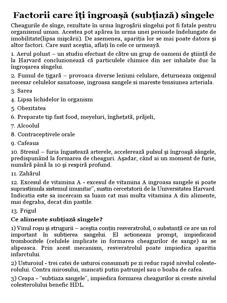 Subțierea Sangelui Factorii Care Iti Ingroasa Sau Subtiaza Sangele