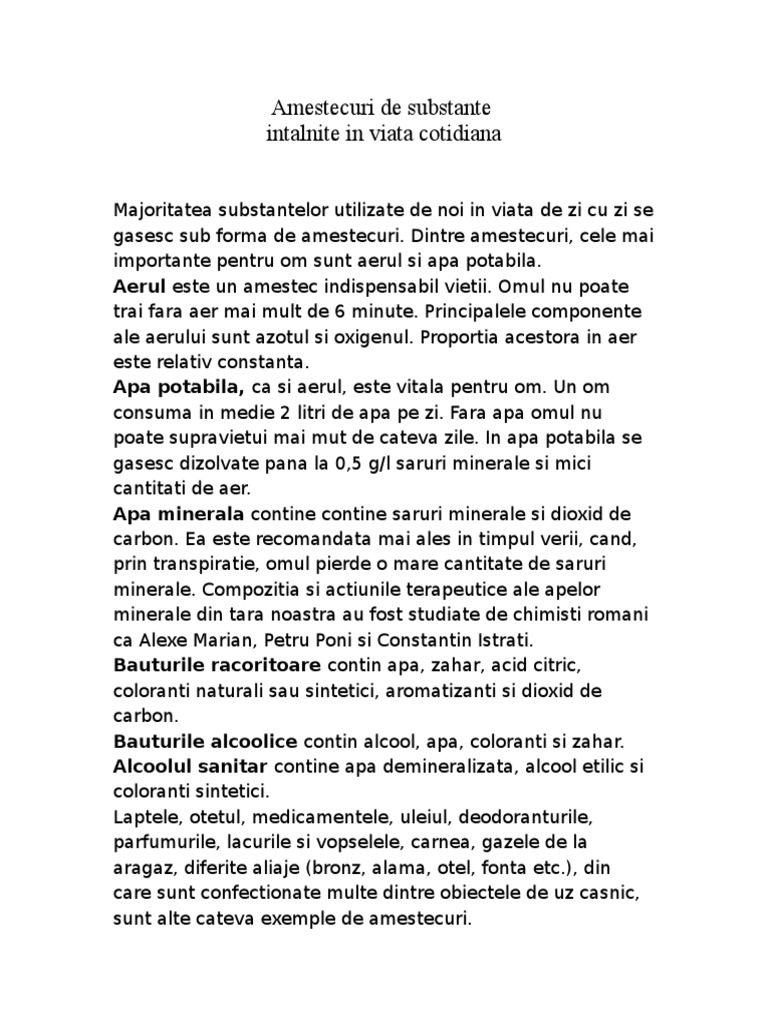 Amestecuri De Substante Intalnite In Viata Cotidiana