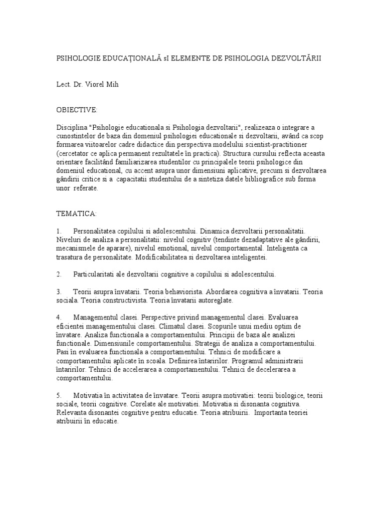 Psihologie Educaţională Si Elemente De Psihologia Dezvoltării