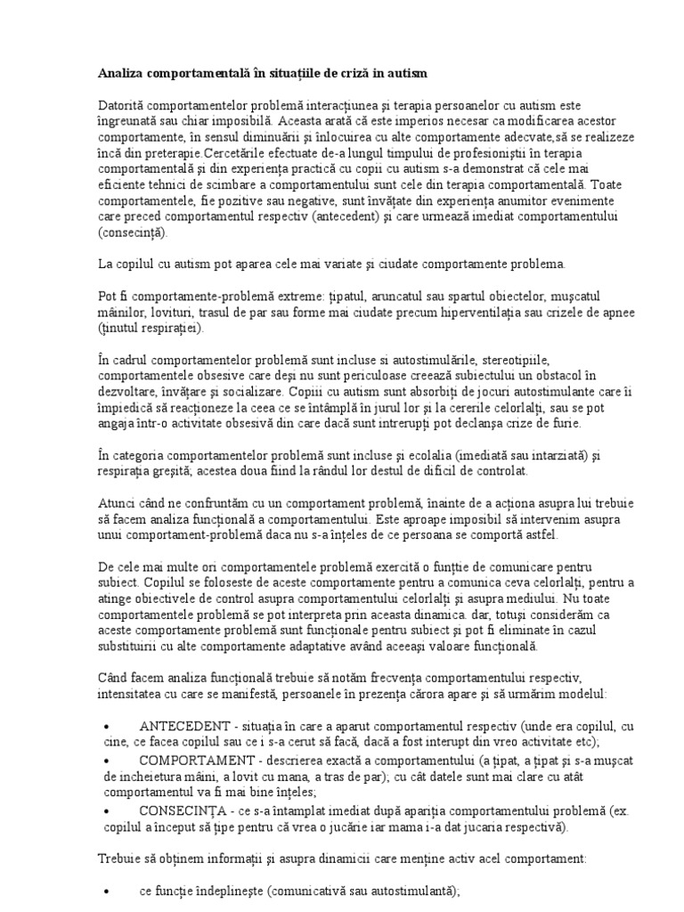Doc Analiza Comportamentala Analiza Comportamentală In Situaţiile De Criză In Autism Delia Naghi Academia Edu
