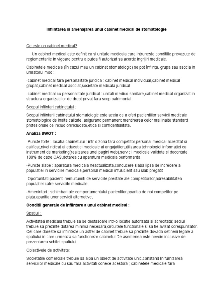 în cabinetul medical serviciile de sănătate se realizează de medici de medicină generală medici de familie medici stomatologi medici specialiști și alte categorii de personal medical autorizat. Taxa 300 lei. Echipa noastra va incerca sa va sprijineasca in demersul dumneavoastra si va raspunde in cel mai scurt timp. In urma actiunii tematice de control a unitatilor de invatamant si a cabinetelor medicale scolare realizate de inspectorii sanitari din cadrul directiei de sanatate publica dsp vrancea in perioada 17 27 septembrie au fost verificate 12 cabinete medicale din totalul de 28.