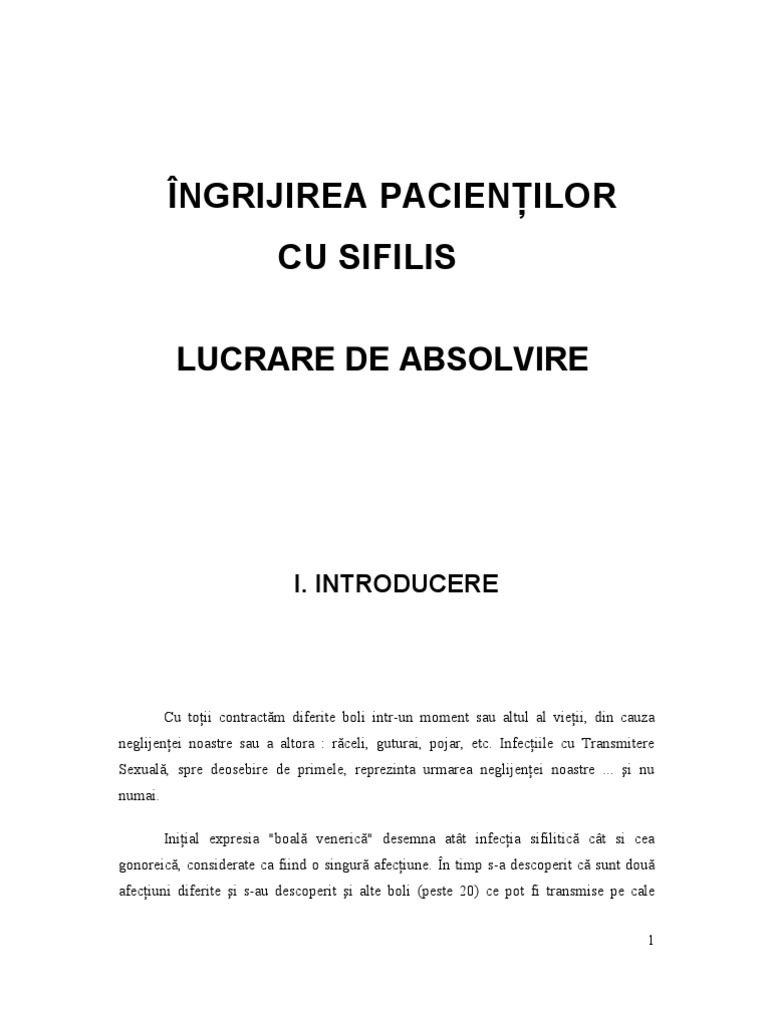 Rolul Asistentei Medicale In Ingrijirea Bolnavului Cu Sifilis Diploma Ro