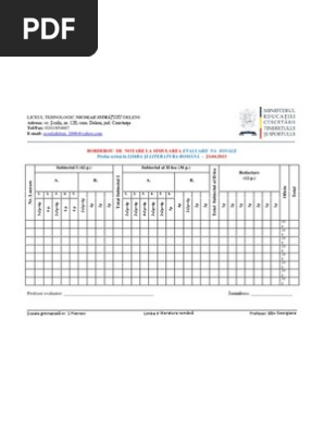 Borderou pentru notare la evaluarea națională limba român. Metode de instruire lectia itemi de evaluare. 0 stele 0 review uri. 13 martie 2017 23 51.
