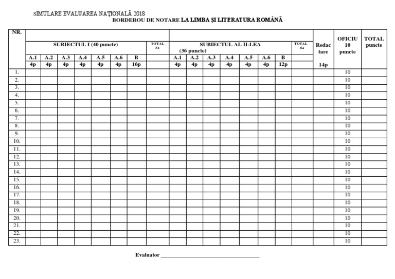 Borderou De Notare Evaluare Nationala Limba Romana 2018