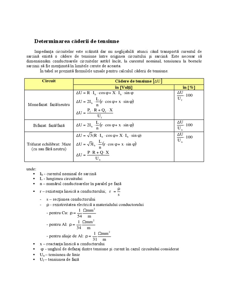 Cadere de tensiune electrica. Tensiunea scade in lungul unui conductor prin care trece curentul electric producandu se ceea ce numim pierdere de tensiune notata cu δ u. Academia edu is a platform for academics to share research papers. Ea este direct proportionala cu rezistenta conductorului pe portiunea considerata si cu intensitatea curentului ce trece prin acel conductor. Sau într un circuit tensiunea se mai poate afla și.